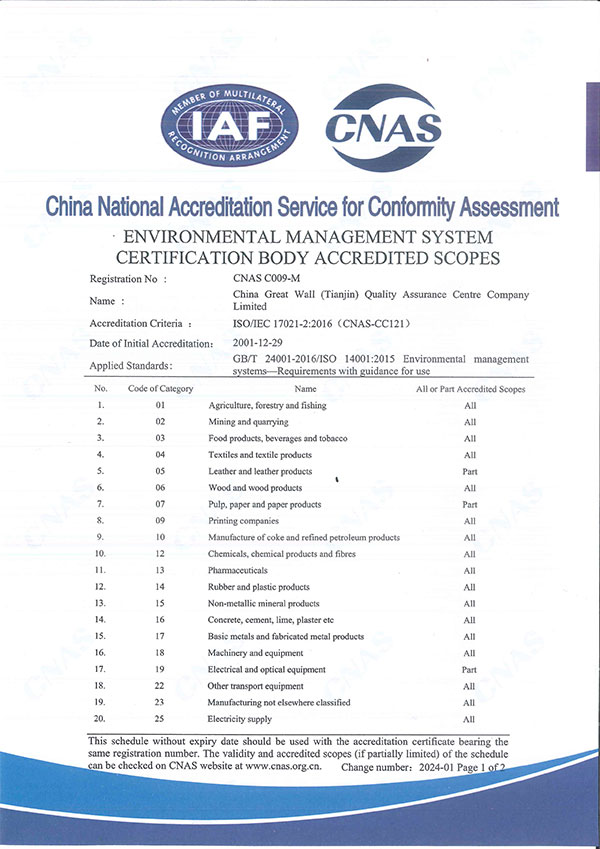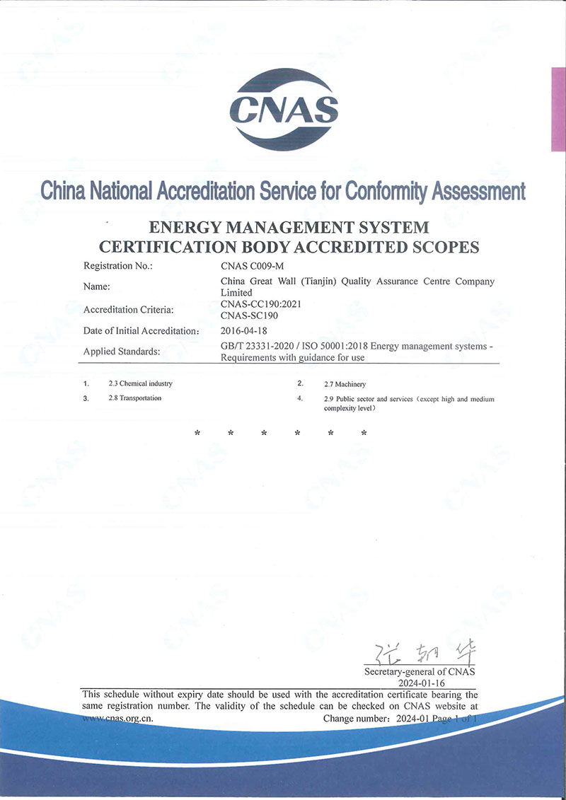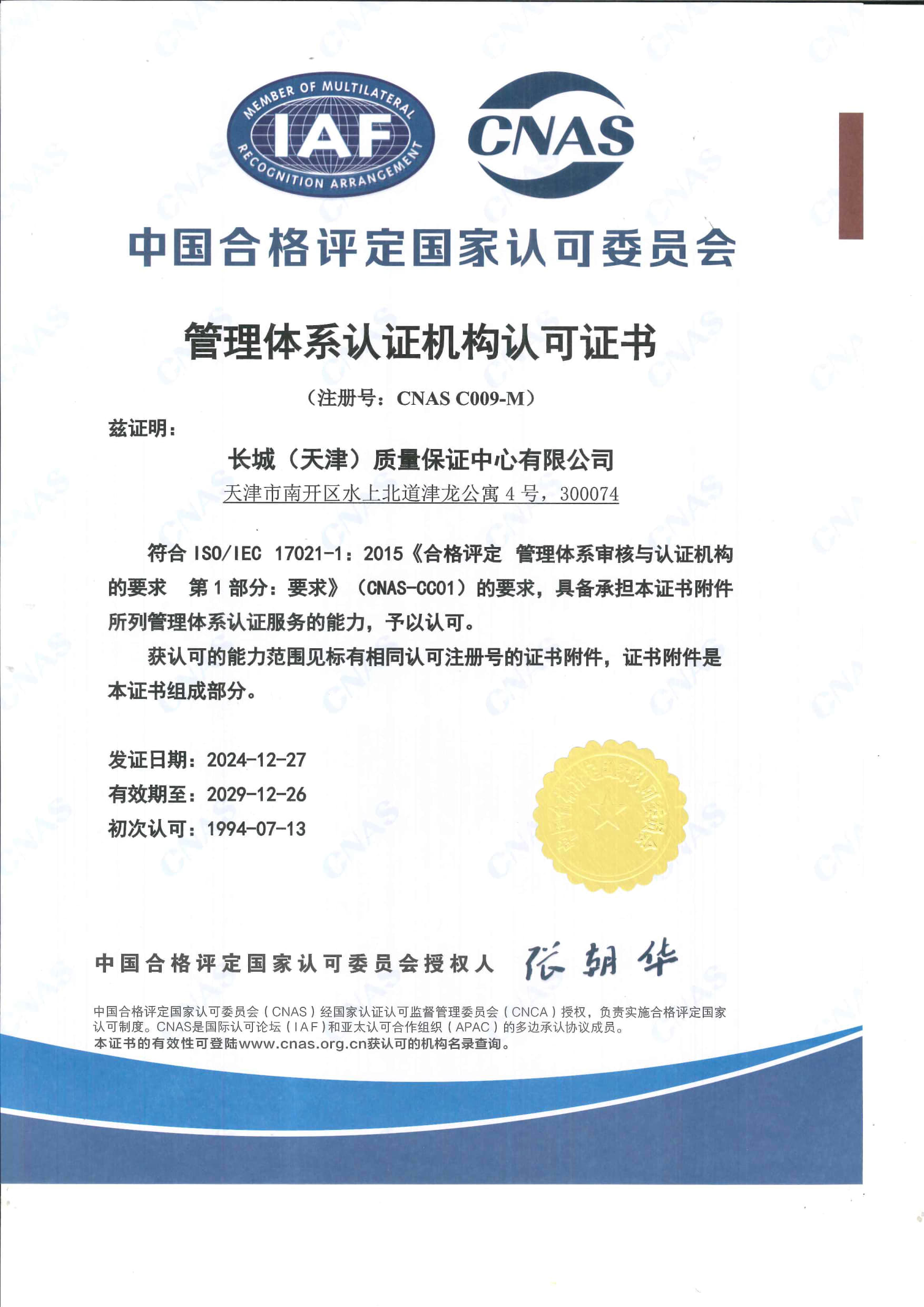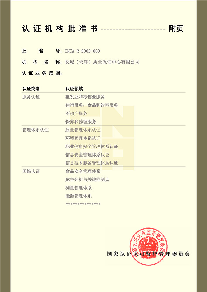 長城(天津)質量保證中心有限公司(簡稱“長城中心”),出資人為天津國興資本運營有限公司,是國有法人獨資企業。長城中心是經國家認證認可監督管理委員會批準認證資格、經中國合格評定國家認可委員會批準CNAS認可資格的具有獨立法人資格的第三方認證機構,是中國認證認可協會的常務理事單位。 長城中心1993年首批獲得國家認可并批準注冊,具備國際認證認可論壇IAF國際互認資格,現已發展為遍涉全國認證業務的大型綜合性認證機構之一。 長城中心具有質量管理體系、環境管理體系、職業健康安全管理體系、食品安全管理體系、危害分析 [查看詳情]